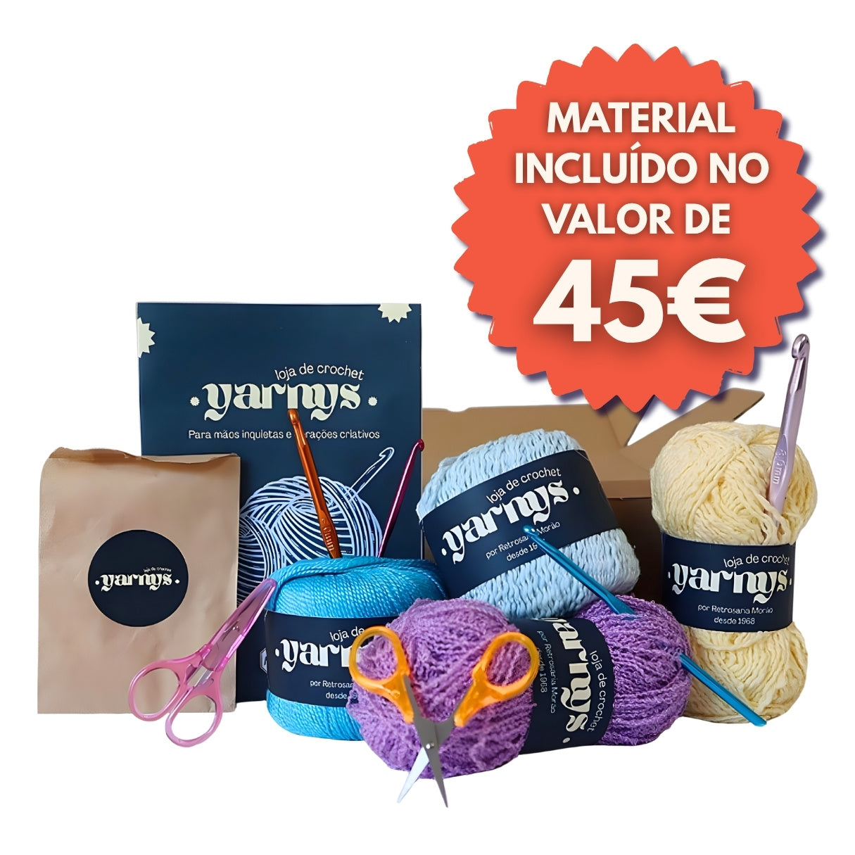 Recebe fios vintage premium, um manual mensal exclusivo com 2 projetos (iniciantes e avançados), imagens passo a passo, tutoriais e todos os materiais essenciais para dar vida às tuas criações.